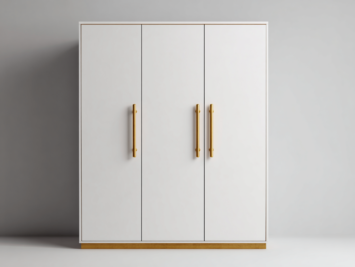 Armario de tres puertas blanco con detalles dorados 135x60x200 cm - Diseño elegante