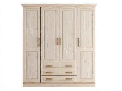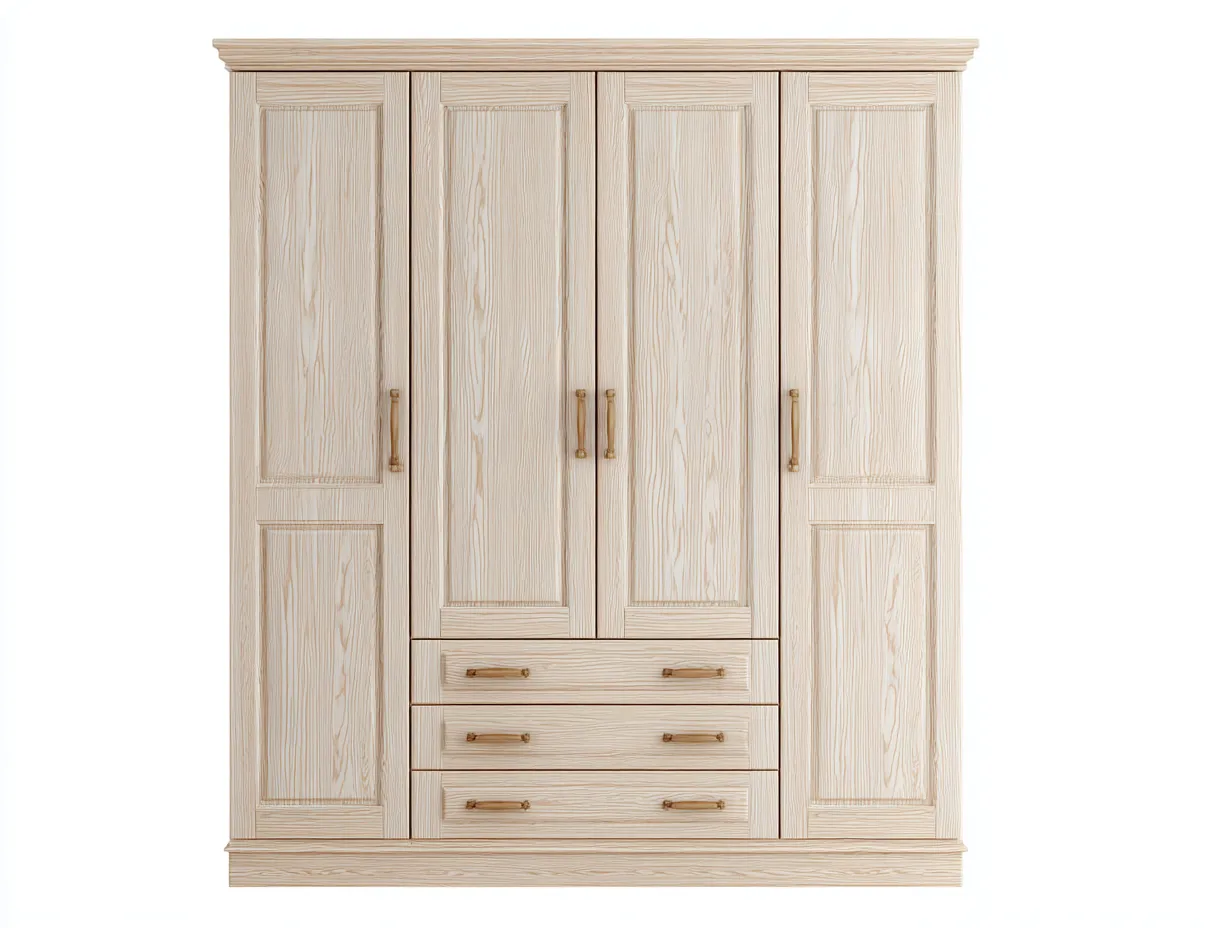 Armario de cuatro puertas con cajones 210x60x220 cm - color madera clara - diseño clásico para dormitorio