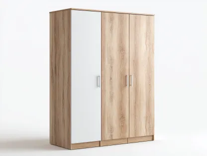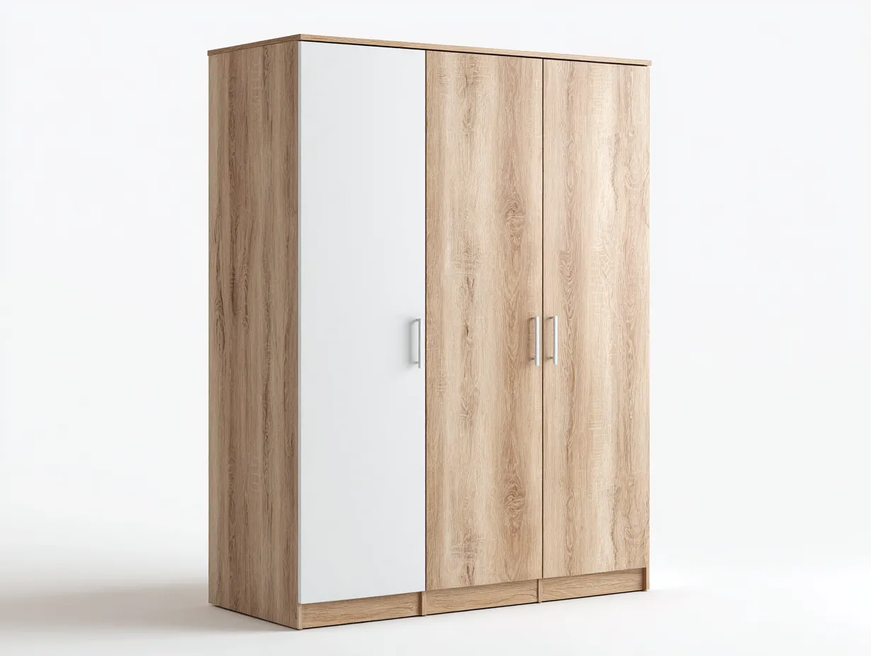 Este armario de tres puertas es una solución práctica y equilibrada para el almacenamiento en el dormitorio. Su diseño vertical permite aprovechar el espacio disponible y facilita una organización clara de la ropa y los accesorios.